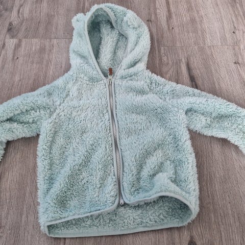 Søt teddyjakke med hette m/ører fra KappAhl. Str 86/92