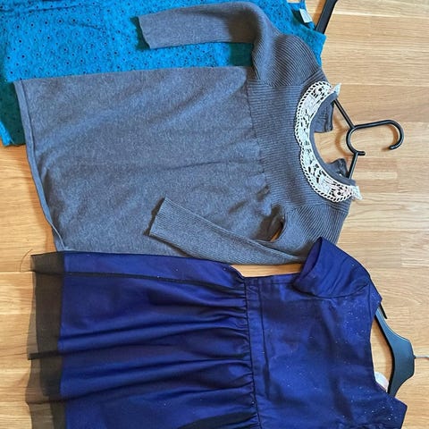 Langermet kjole, mørkeblå med blå prikker.