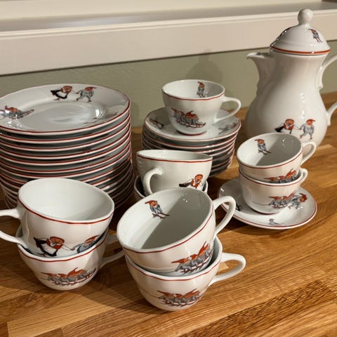 Dyp barnetallerken fra Stavangerflint selges rimelig. Noe preget av elde og bruk, men fortsatt fin. 19 cm i diameter.