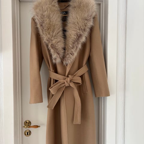 Nydelig kåpe i 100% ull med pels, fra Max Mara Studio. Bare brukt en gang, som ny. NB; Beltet tilhører egentlig en Max Mara Kashmir kåpe, grunnet manglende tilhørende belte i butikken ved kjøp. Kjøpt på Briskeby Gods CC-vest.