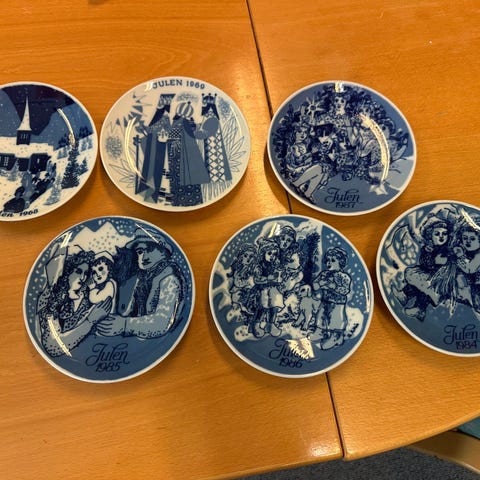 Samling av PORGSGRUNN PORSELEN med fester og i topp stand! se bildene for årstallene! Fine kontinuitet i årstallene