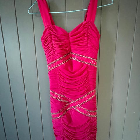 ✨ Champagne farga kjole frå b-young (litt usikker på str, men vil tru den er XS/S), brukt 2-3 gonger 😊 300kr (denne kan brukast både med og uten stropper, den er lenger bak og kortare framme)
