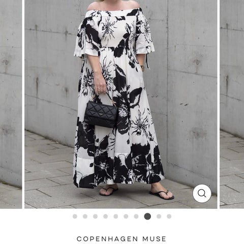 Cmmolly Dress fra Copenhagen Muse. Off-shoulder kjole fra Copenhagen Muse. Cmmolly Dress har elegant, flowy maxilengde og lommer i skjørtet. Kjolen har volangkant i overdelen og bredt belte i midjen med logotrykk som skaper en kul kontrast.