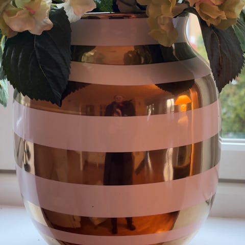 Fargene er svart og hvit, vasen er hel pg pen uten brulsmerker.