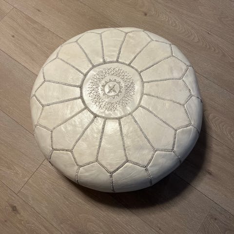Selger en pent brukt puff i sort velour.