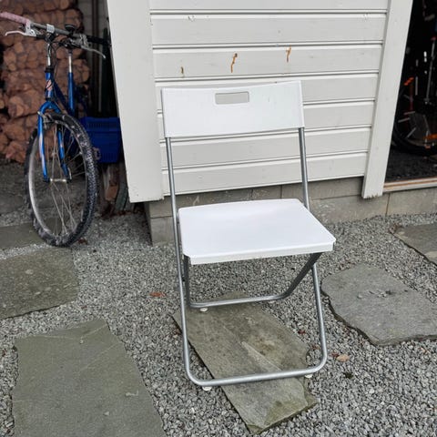 Grønn klappstol fra ca 2000-tallet, Y2K. Den heter Nick, men ligner litt på Gunde. Pent brukt som ekstrastol.