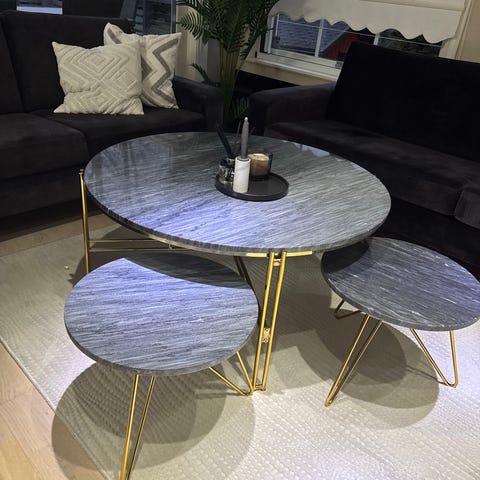 Flott sofabord i ekte marmor med gullbein