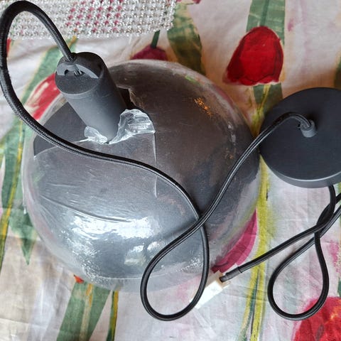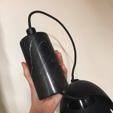 Pen og stilig takpendel i svart polert marmor selges. Den er relativt tung og solid. LED dekorpære kan følge med om ønskelig. Se ellers bildene for detaljer.