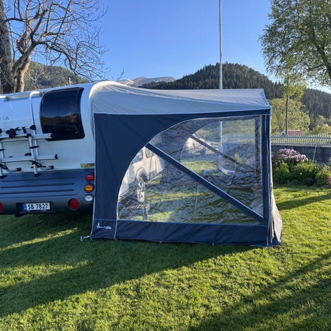 Passer for montering på kompatible Fiamma-markiser på bobil og eller Campingvogn er 4 meter lang, har stått på Pøssel road Cruiser med Fiamma 45S Markise (Markisen følger ikke med) Stenger og fester følger med i systemet, og teltet kan tas ned og pakkes sammen for lagring når det ikke er i bruk. Ny pris er over 15.000,-