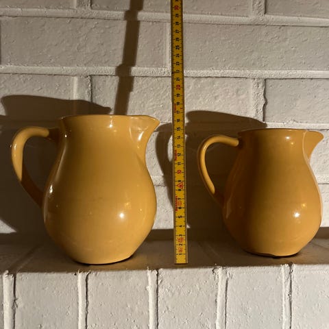 Kanne, 2 skåler, 2 fat. Firm living. Grønn serie.