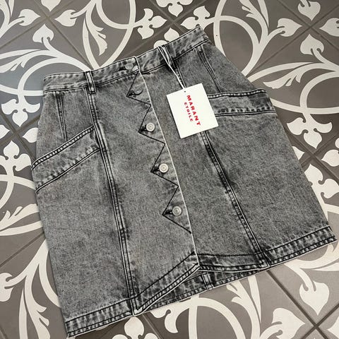 I imitert skinn med kule detaljer og glidelås. Veldig pent og ser ubrukt ut
