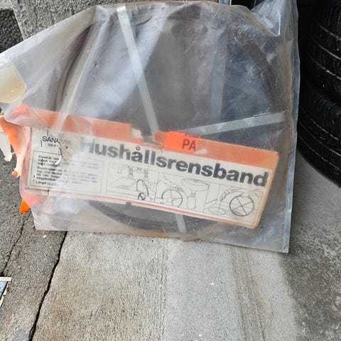 Mål 14 mm bredde, tykkelse 2 mm, lengde ca. 14-15 meter.