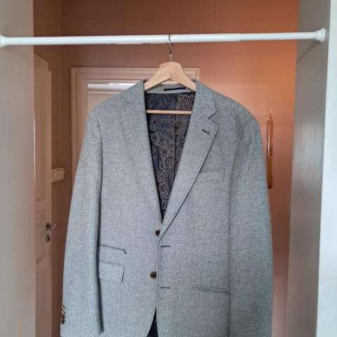 Dressjakke fra dressman strls 46 regular slim fit. Jakka er hel og fin. Ingen merker annet en litt støv ettersom den har hengt i boden. nypris på rundt 2000kr