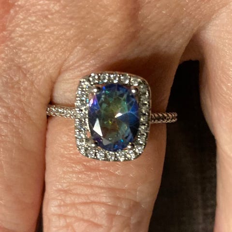 Hvitt gull med topas. Nydelig Forlovelsering.Innvestering