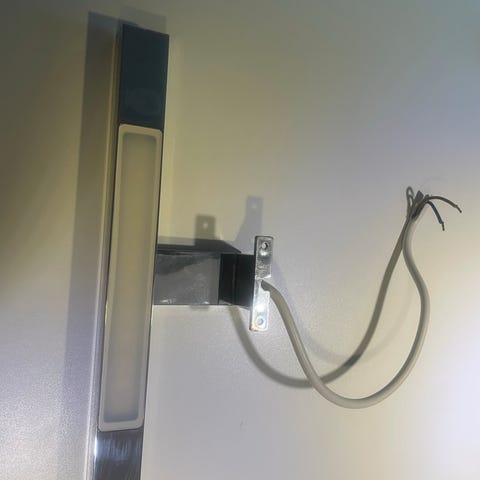 Skjermen er 25 cm høy. 35 cm inkludert metalldelen over skjermen. Maks lenge på ledning er 70 cm. Maks lengde fra tak til underkant av skjerm blir da 105 cm.