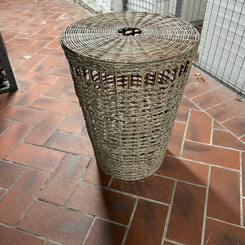 Vintage stor kurv, brukt til oppvarming av garn.