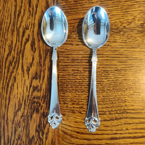 Selger helt nye 6 stk. spiseskjeer / middagsskjeer med et rett håndtak for 90 kr.