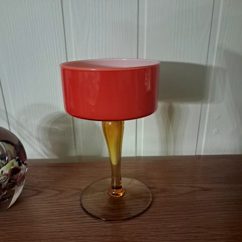 H 15 ,diameter 11,5 .Fargen mer mot orange.