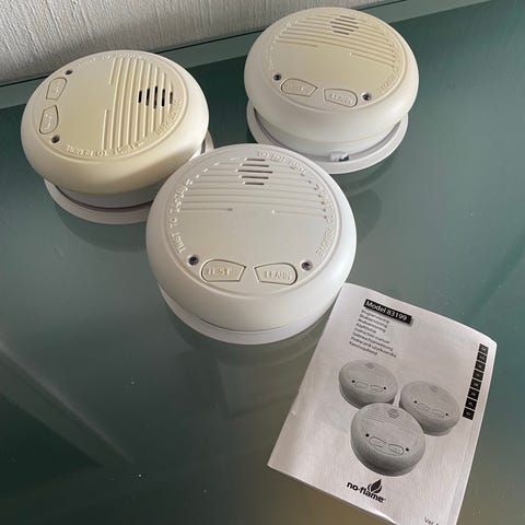 Pakke med tre No Flame brannvarslere. Ubrukt, kan seriekobles. Ny pris 699,-