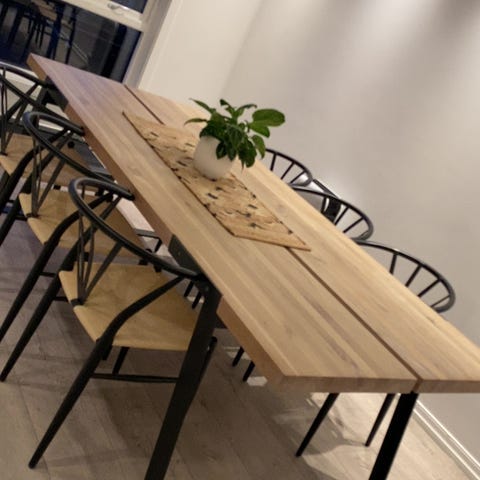 Helt nytt eikebord med metallbein. Eikeplaten er satt inn med osmo hardvoksolje.