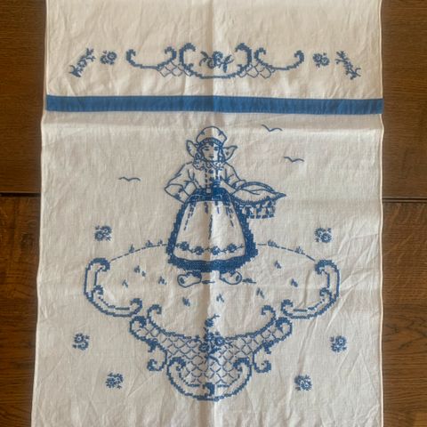 Fin julegardin selges. 42 cm bred uten oppheng . Med oppheng cm 46,5 cm. Koselig julemotiv. Julekappe