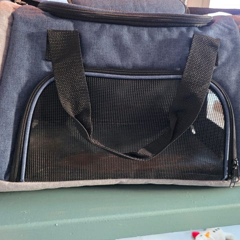 Praktisk ryggsekk til og ha hund i. Passer småhunder. Har brukt til min chihuahua. Selges da jeg har kjøpt ny. Åpning på hver side og oppå. 200 kr for 1,har 2 stk til salgs. Hentes i Lørenskog ved Ahus
