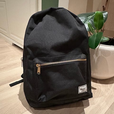 Sekk fra Herschel i en fersken/rosa farge. Noen bruksmerker, selges derfor billig
