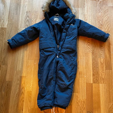 Pent brukt kjeledress/vinterdress str 110. Litt rift/slitasje på baksiden se på bilde men ingen hull. Selges kr 300. Kan også sendes i posten