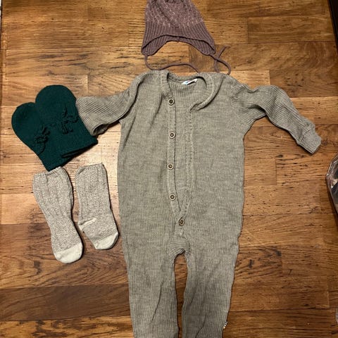 Merinoull overall med votter og sokker