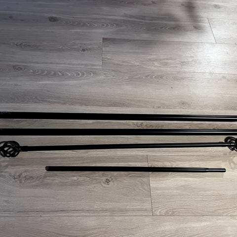 2 stk tynne stenger i str 112-220 cm. Ca 16mm tykk. Har endepropp til begge. 50,- pr stk