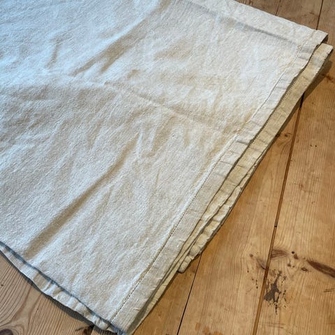 Stor supeduk kjøpt hos Backe i Grensen. Ensfarget grå lin. 245x145 cm. Duken har ligget på bord. Ikke vært i måltid. Ingen flekker. Perfekt stand. Må strykes.