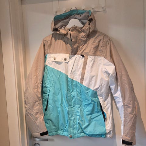 Veldig pent brukt allværsjakke i dus blåfarge. Jakken er lik som på bilde uten de beige partiene.