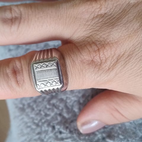 Tøff herrering i stainless steel, pent brukt kan sendes. Ringen er ca. 22 mm inni. 99,- + frakt.