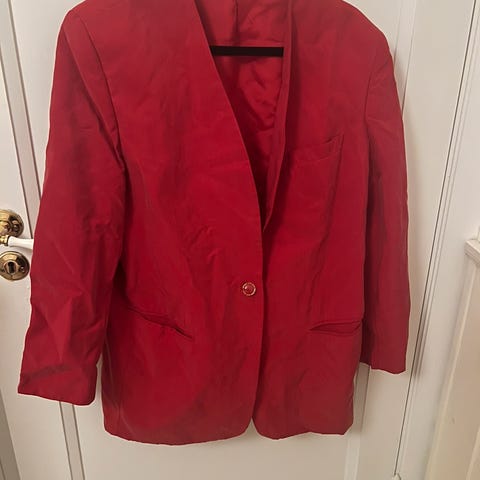 Foret med silkefor og den har pene detaljer, lommer og knapper ved håndledd. Str 40,men veldig liten i str. Tilsvarer str small til medium str 38.