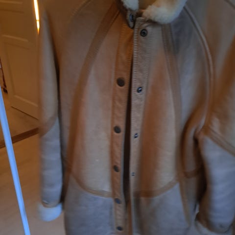 Stilig jakke laget i ekte skinn. Pent brukt. To lommer og fine detaljer. Str M. Kan sendes.