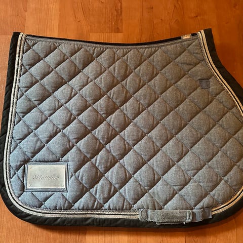 Hvit dressurshabrak fra LeMieux str full. Kun brukt 2 dager på stevne. Er vasket og ingen slitasje, men noen svarte merker etter salen (dette synes ikke da salen kommer over).