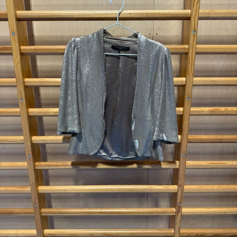 Helt fantastisk sølvgrå paljettjakke fra Filippa K. Aldri brukt fordi den er for liten til meg :(. Merket med størrelse large, men det er den ikke, passer small og medium (kommer an på hvilken fit du liker). Skulderputer og en hempelås. Denne er kul til både jeans og dressbukse!