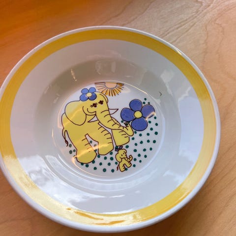 Dekorserien "Gry" av Inger Waage, flerfarget silketrykk som finnes på flere former, se siste bilde.