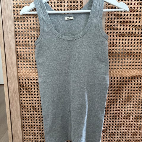 Gressgrønn singlet/topp fra Malene Birger i glatt stoff (det er ikke vaskelapp i den, så vet ikke hvilket materiale det er). Brukt til pent noen få ganger. Regulerbare stropper.
