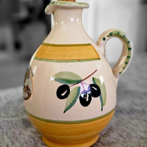 2 flotte italienske pynte krukker. Til å ha olivenolje i