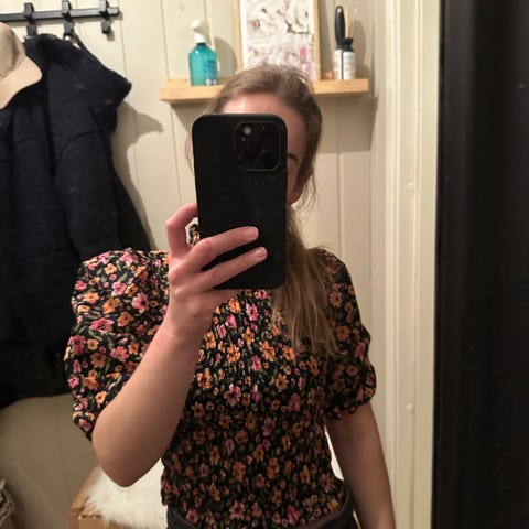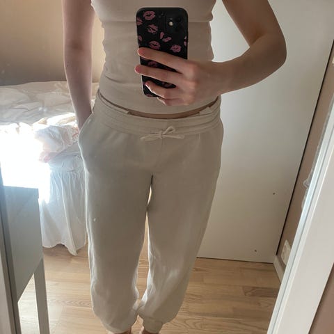 Enkel og søt hvit singlet topp. Justerbare stropper, og et litt tykkere stoff som gjør den mindre gjennomsiktig. Den går ned til hofta ca, stoffet er noe stretchy.