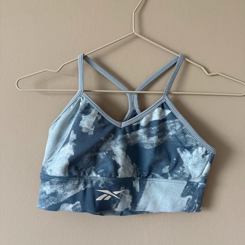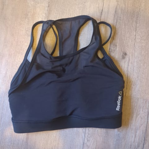 Ubrukt sportsbh/ammebh fra Reebok. Den er bare vasket og prøvd på. Den er liten i størrelsen og passet ikke meg. Står str S, men tilsvarer en XS i passform.