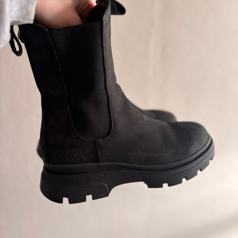 Helt nye beige støvletter i skinn, som nye - kun brukt i 10 minutter. Ferdig impregnert. Dessverre var de hakket for små for meg. Veldig fine! Ny pris 1700 kr.