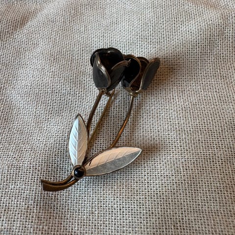 Brosje, nål, pins, designer, alpakka, Feminint, 50 tallet, retro, antikk, vintage, samleobjekt, smykke.