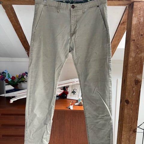 Jack &Jones , chinos bukse i beige, pent brukt. Ingen hull eller slitasje. Str 36/32, En vask og litt stryking, er den fin igjen. God bukse.