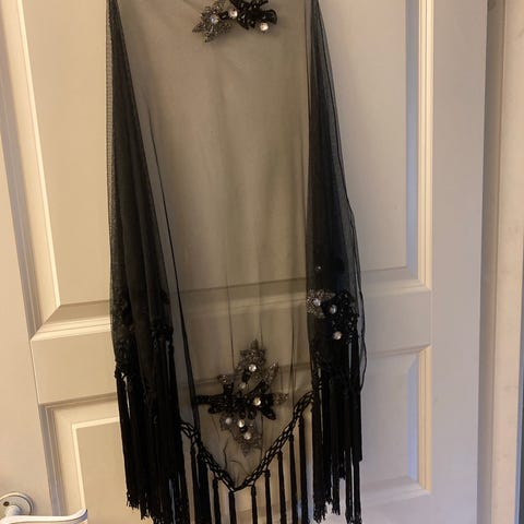 Et forkle, kan brukes over sort strømpebukse ol. Passer til fest eller annet utkledning selskap. Ubrukt. Passer til voksne. Tyll og silke aktig stoff. Kan selges i posten for rimelig porto