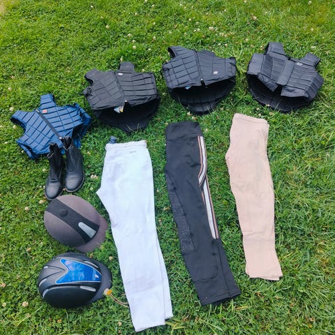 Fullt sett med reisebeskyttelse belegg. Passer til varmblods/stor hest. Gummien på innsiden av beina er slitt bort, ellers i fullt brukbar stand, alle borrelåser er gode etc.