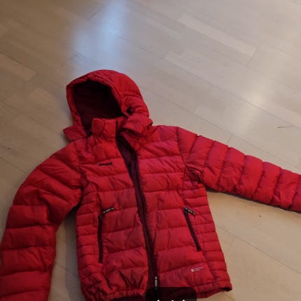 Ene strammeren ved hals er litt løs, men ikke noe iveien for bruken. Hull ved stoff ytterst på ett av ermene, men heller ikke noe i veien for bruk og kan syes.