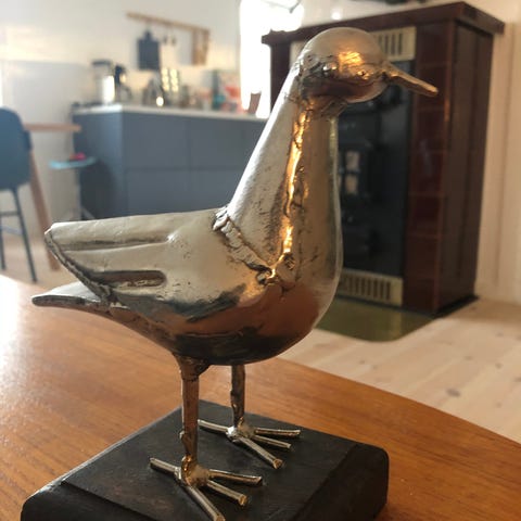 Ca 20.5 cm på det lengste..ca 23 cm på det høyeste. Et avslag på nebb. Se bilder. Brukt til blomster. Retro, 60-tallet??? Merket HH Norway og nummer. Turkis . Kjøper betaler porto