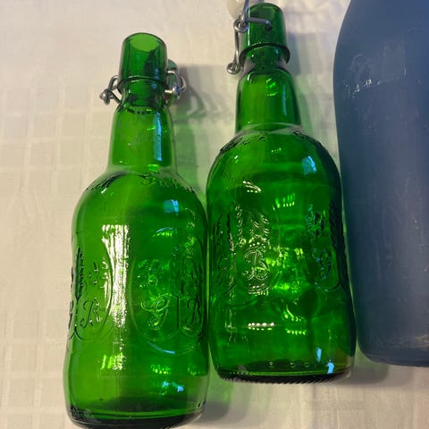 Grønn flaske med topp. Jeg kan sende med Post Nord.Porto blir 69kr. Jeg har flere annonser her inne kan samsende.😊